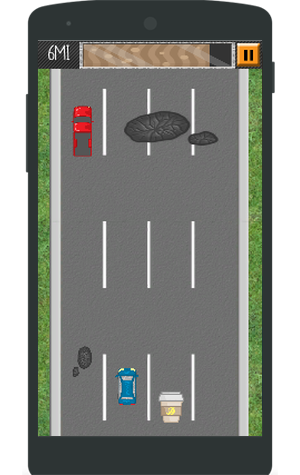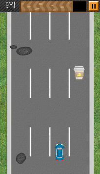 Put the pedal to the metal and try not to spill your coffee! Dodge potholes, traffic and sometimes unwanted items in this fast paced endless runner. With 6 Challenging Achievements to keep you going and a Leaderboard to compete against friends the fun will be nonstop. Pick up coffee to keep going, but too much can be dangerous! Caution: Contents Hot